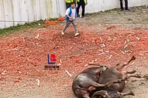 斗牛比赛现场,两牛猛烈对撞双双倒地,众人紧急施救!!!